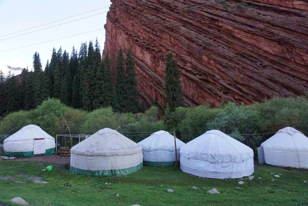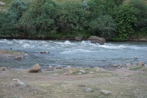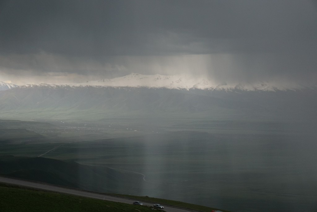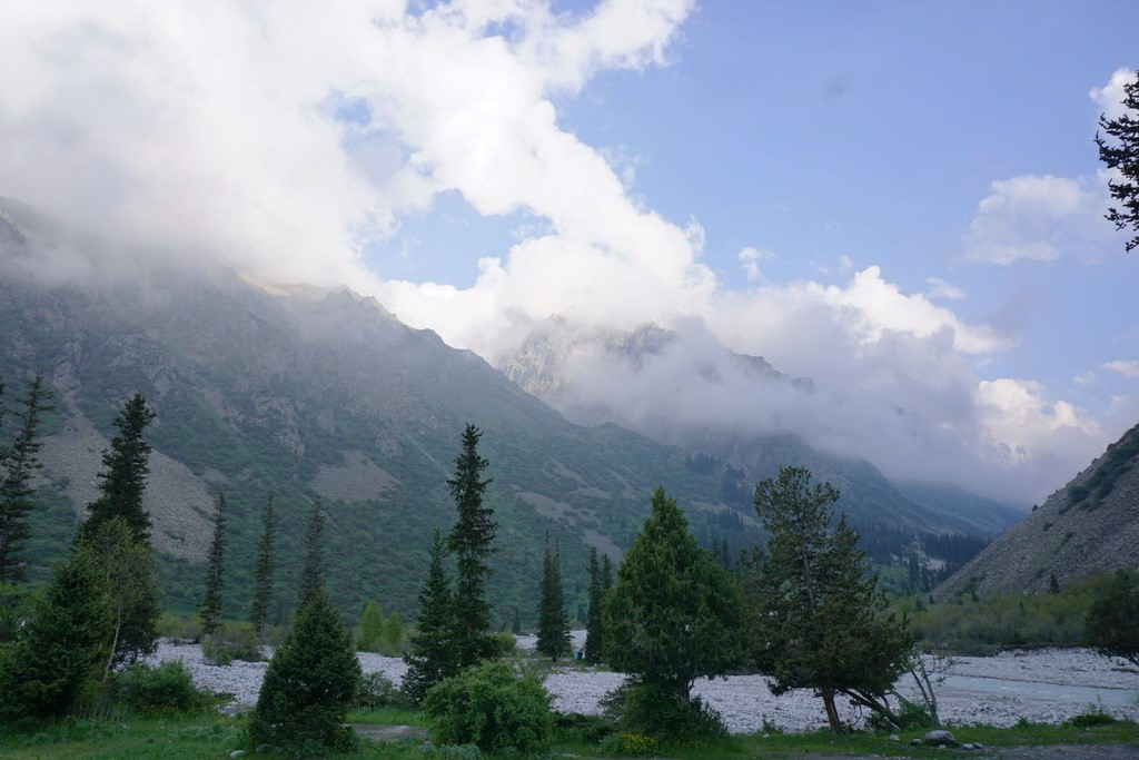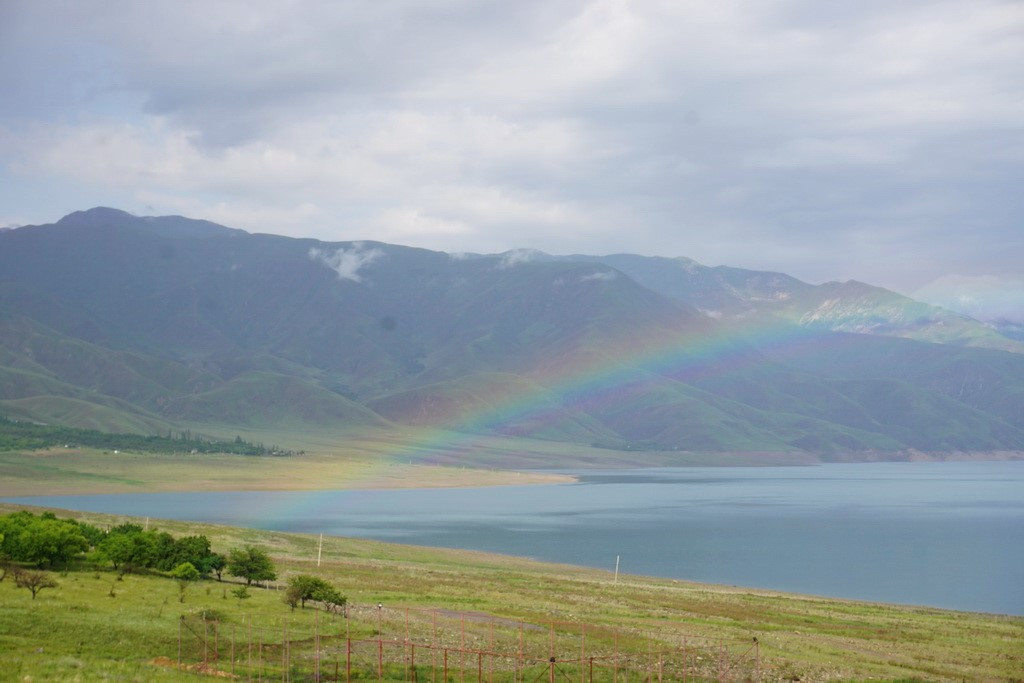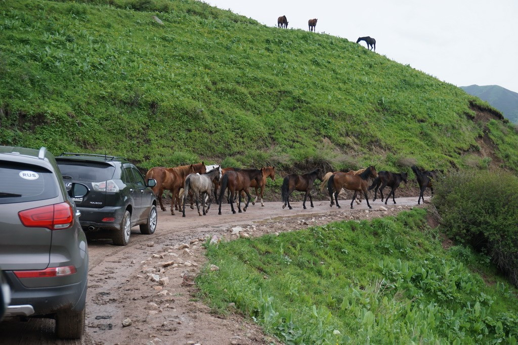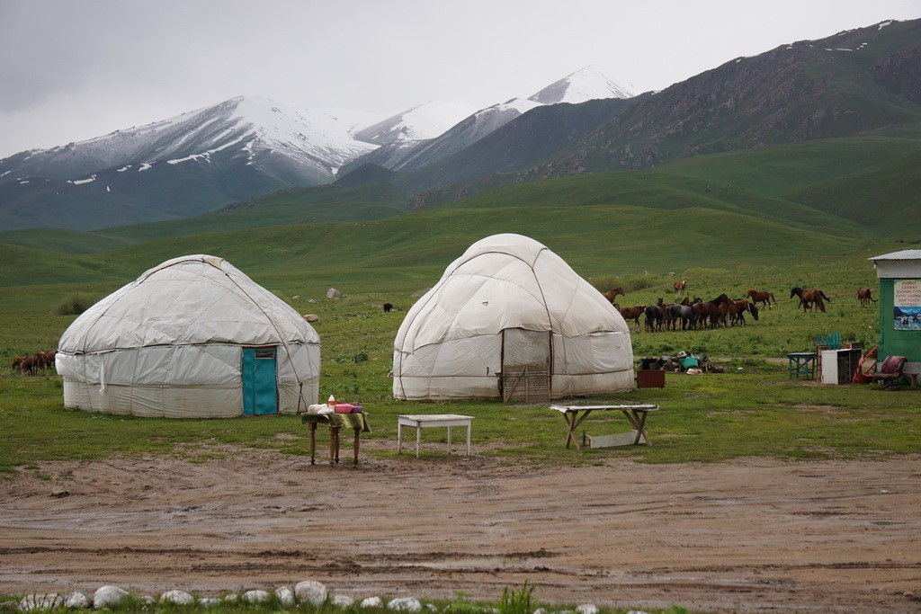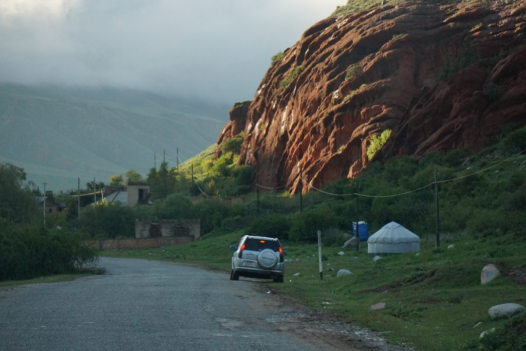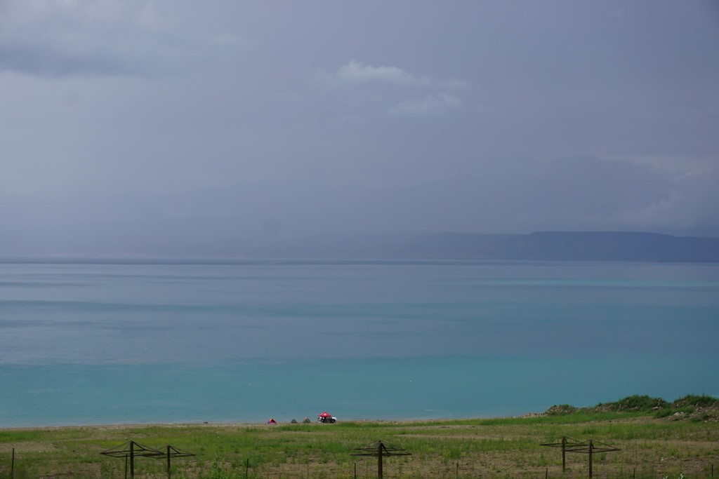 Далее наш путь лежал на восток, по Чуйской долине, к высокогорному озеру Иссык-Куль, вокруг которого мы сделали круг, посетив термальные источники, музей и место погребения великого русского путешественника Пржевальского, преодолели среди живописных горных пейзажей несколько сотен километров пути. Иссык-Куль оставил незабываемое впечатление благодаря красоте самого озера и его окрестностей, хотя с погодой не очень повезло, так и не удалось искупаться в этом никогда не замерзающем водоеме.