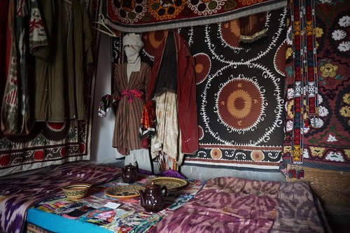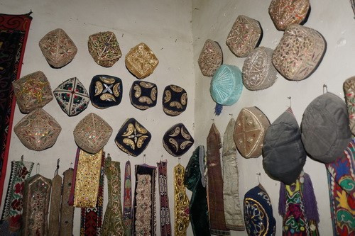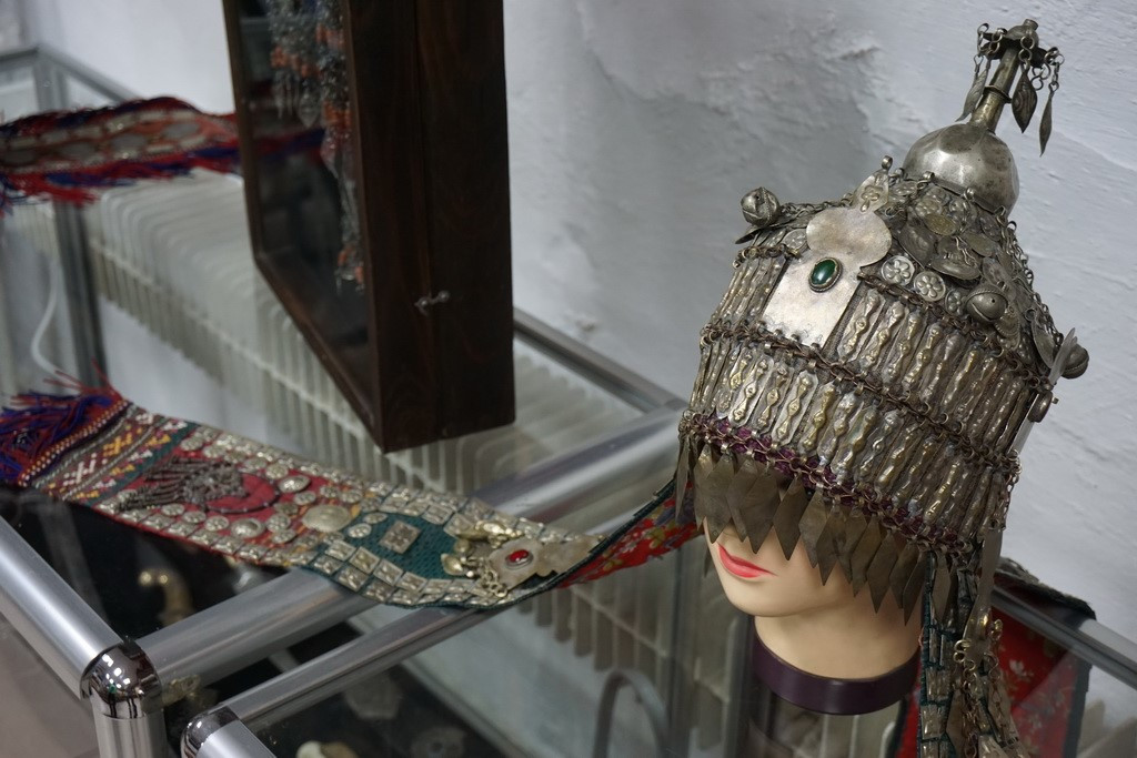 В районном центре Исфара нам посчастливилось познакомиться с Марией Александровной, профессионально занимающейся изготовлением национальных таджикских головных уборов, благодаря чему коллекция музея пополнилась не только разнообразными мужскими и женскими тюбетейками, но даже старинной паранджой (чапан), возрастом более 100 лет.