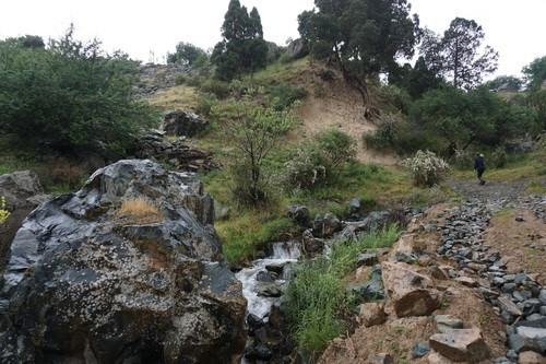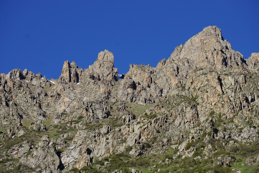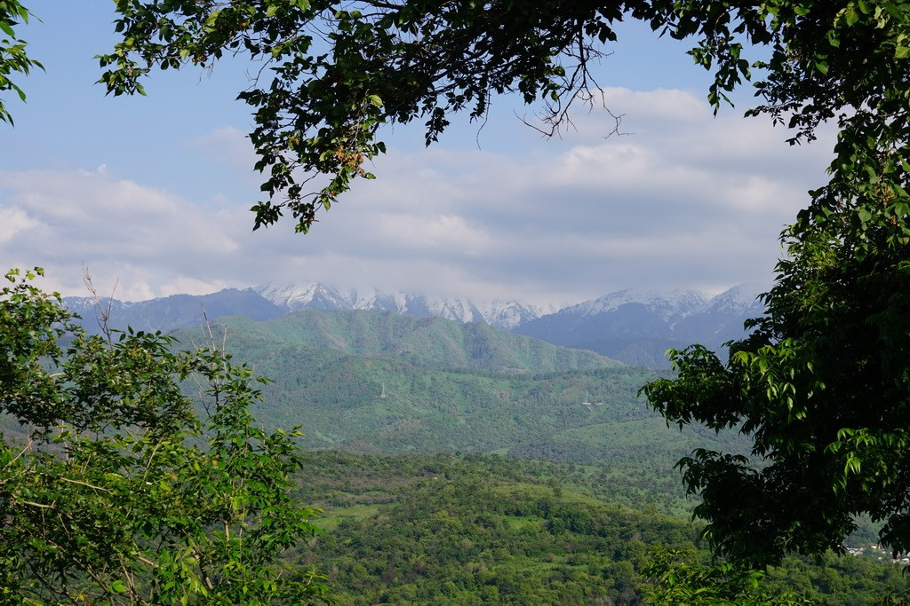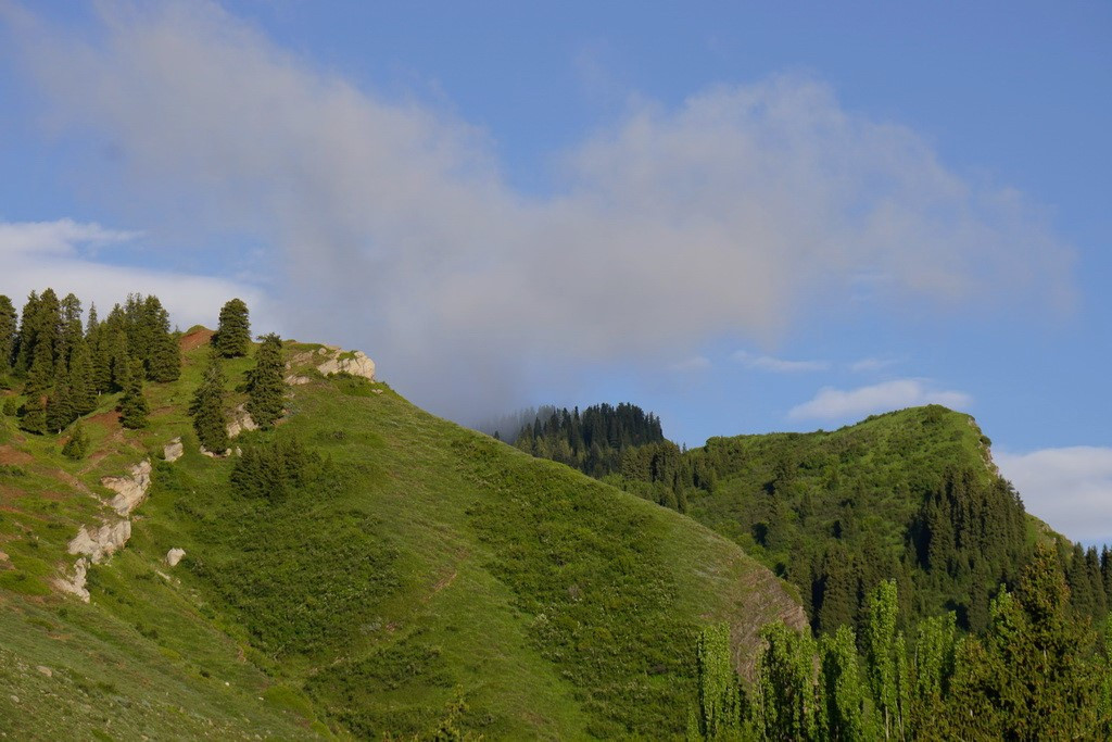 Погода сегодня хоть и ясная, но ветреная и холодная. Обращаем внимание на лиственные деревья, на них только начинают распускаться почки, настолько велика разница в климатических условиях. Останавливаемся на обед, и сразу попадаем на холодный, почти ледяной ветер: пусть совсем небольшая высота, но она дает о себе знать, когда находишься в горах.