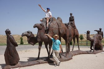 Здесь запомнились две наиболее ярких составляющих, это верблюды и гигантские мусульманские кладбища. Первых верблюдов мы встретили вчера вечером во время проезда к Шымкенту, но были настолько вымотаны таможней и жуткой жарой, что не уделили им достойного внимания.