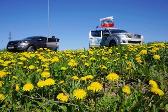 Поля и луга покрыты сплошным ковром цветущим одуванчиков, за ними – яркая, сочная зелень берёзовых рощ, на дальнем плане – голубовато-ультрамариновые очертания древнего Урала, к которому мы неотвратимо приближаемся с каждым пройденным километром.
