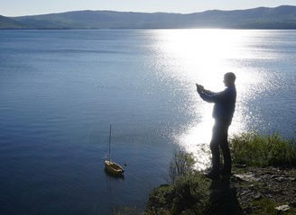 Судя по существенной разнице между совсем ветхими, древними избушками и фешенебельными коттеджами, люди здесь живут очень по-разному. Вскоре из-за поворота неожиданно открылся вид на большое пресноводное озеро, вода его играет бликами, - картина на самом деле живописная, поскольку со всех сторон оно окружено невысокими вершинами гор, поросшими смешанными, преимущественно сосновыми лесами.