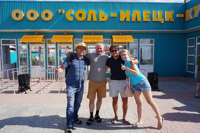 Прибываем в маленький городок Соль-Илецк, благодаря стечению обстоятельств ставший центром оздоровительного туризма, люди едут сюда со всей России чтобы провести время на соляном озере, по составу воды практически не отличающимся от знаменитого Мертвого моря, что в Израиле. К сожалению, чтобы просто увидеть и сфотографировать озеро, нужно пройти через строгий контроль и электронный турникет, заплатив 100 рублей с человека. Нам это кажется слишком вычурным, отказываемся от затеи, ограничившись фото с аншлагом при входе на курорт.