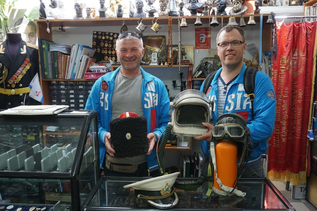 Астана встретила нас обилием небоскребов, современными технически продвинутыми музеями и галереями, высоким уровнем урбанизации. В поездке по столице участников экспедиции сопровождала Алина, наш друг и коллега, благодаря чему за краткий срок удалось ознакомиться с основными достопримечательностями казахской столицы. Здесь же были приобретены первые экспонаты – исторические головные уборы, их удалось найти в антикварном магазине и в местном военторге (для пополнения тематической коллекции форменных головных уборов разных родов войск стран мира).