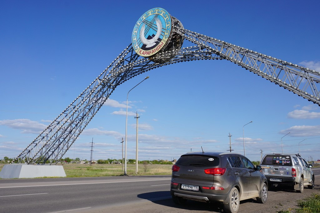 Еще одно отличие – уже упомянутое выше отсутствие растительности, кроме травянистой. Постепенно подъезжаем к Кустанаю, перед въездом в город над дорогой установлена стела в виде арки, на ней – название города на казахском и русском языках, герб города и приветствие приезжающим: монументально и стильно. Свернули на объездную, хотя вскоре все равно пришлось ненадолго заехать в город чтобы развернуться на обширной транспортной развязке и выйти на трассу Кустанай – Астана.