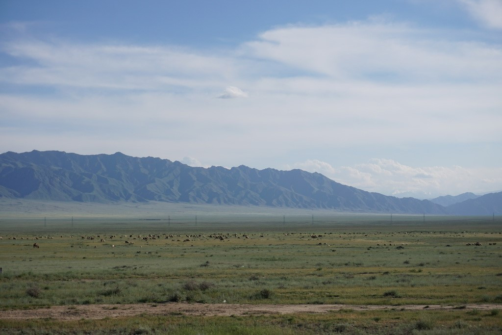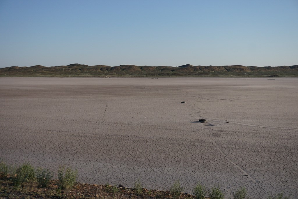 Дальнейший наш путь лежал по бескрайним степям и полупустыням центрального Казахстана, где однообразие пейзажей постепенно нагоняет на водителей и пассажиров тоску и сонливость, особенно это ощутимо в жаркую погоду.