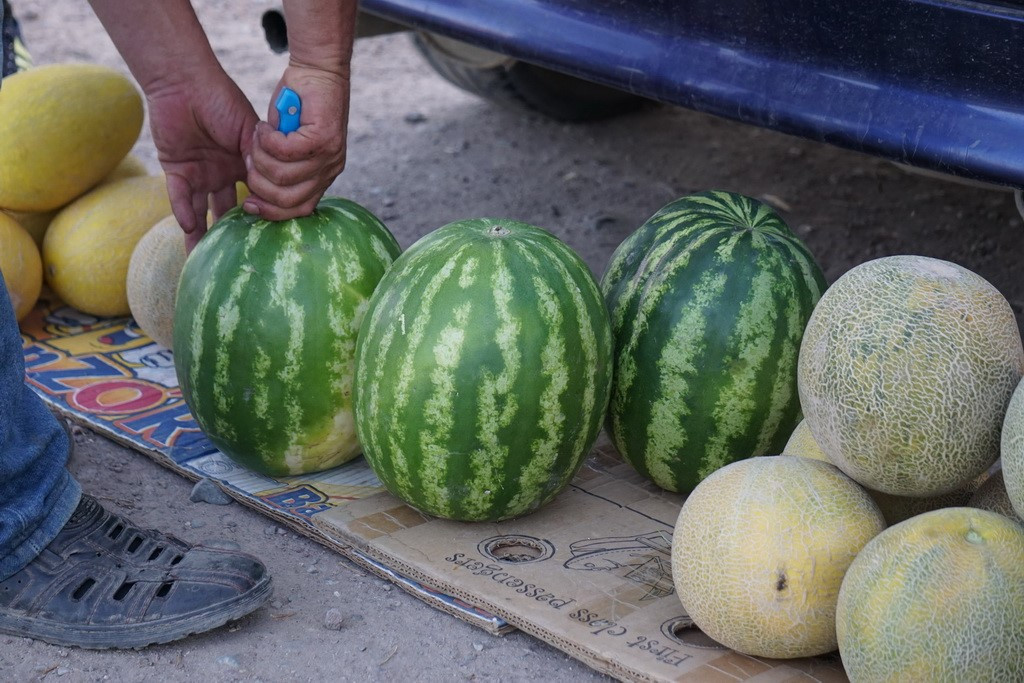 Наконец, наши автомобили досмотрены узбекскими пограничниками, все вещи убраны обратно в салоны, Валерий и Руслан въезжают в нейтральную зону. Следующий этап – прохождение таможенных формальностей Казахстана. На это потребовалось почти столько же времени, вновь детальный досмотр транспортных средств, масса вопросов и т.д. В качестве пассажиров мы быстро проходим таможенный коридор, получаем штампы о въезде в Казахстан, почти обессилев от ожидания на невыносимой жаре находим к своей радости спасительное маленькое кафе, где обедают сотрудники таможни. Сидим за столом втроем с Олегом и Альбиной, ждем наших водителей за чаем и овощным салатом, время тянется медленно, как жевательная резинка. Главный плюс кафе – наличие кондиционера, стоит напомнить: мы провели 2,5 часа снаружи, на 45-градусной жаре.