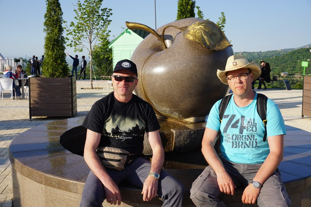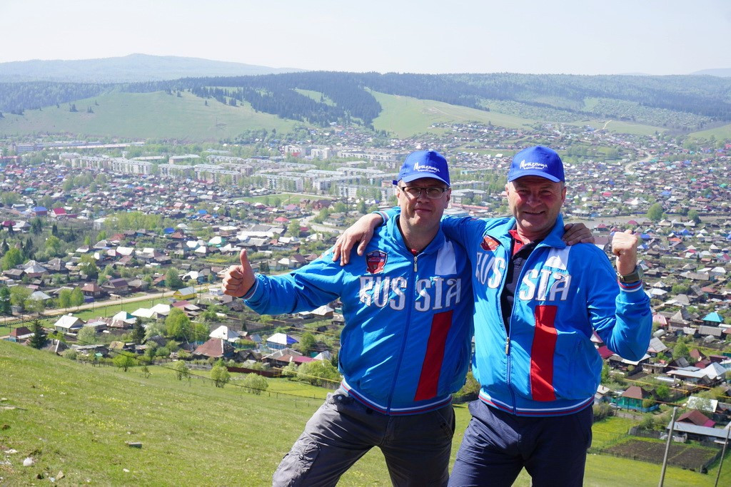 Экспедиционные автомобили в сопровождении целого кортежа из провожавших поднялись наверх, на точку, откуда виден практически весь город. Здесь произошел курьезный случай: Олег вышел из автомобиля, не заглушил его и отошел в сторону, в это время Валерий сел за руль, чтобы переставить авто поближе к берегу, для лучшего обзора при фотосъемке.