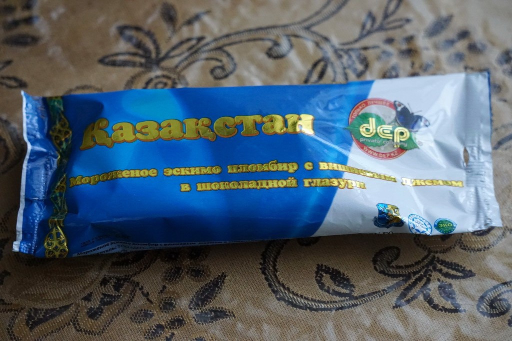 Ближе к вечеру останавливаемся в придорожном кафе чтобы подкрепиться, внутри чисто и уютно, за стойкой – русская продавщица, радует нас хорошо приготовленной пищей и низкими в сравнении с российскими ценами. Коль скоро мы на территории Казахстана, все расчеты идут уже в местной национальной валюте, называемой «тенге», один рубль стоит 5 тенге, соответственно, считать, что сколько стоит, достаточно просто. Еще пробуем казахстанское мороженое, покупаем эскимо в шоколаде и устраиваем дегустацию. Большого отличия от российского не обнаруживается, но есть его вполне можно.