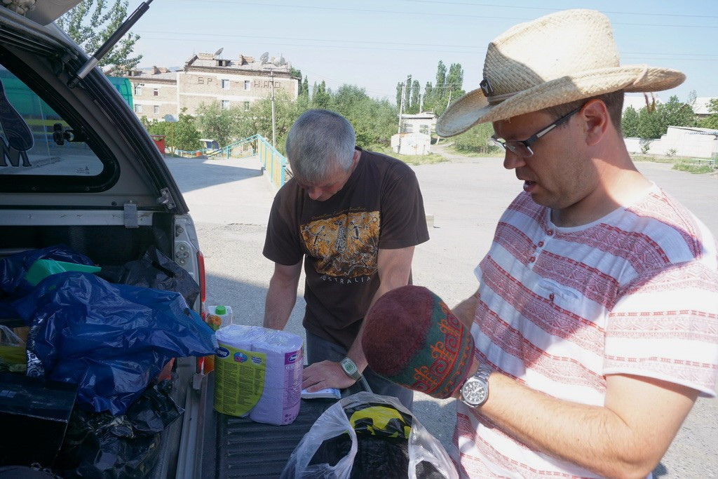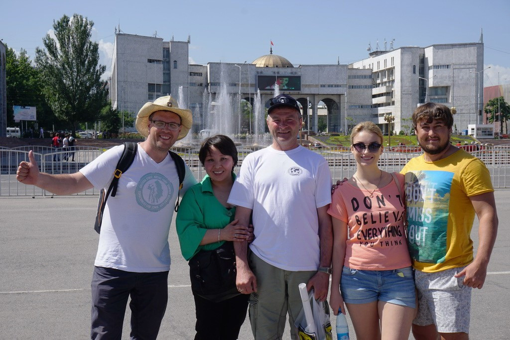 Из Алматы экспедиция направилась на запад, обогнув отроги гор и преодолев перевал, мы оказались в Бишкеке, столице соседнего государства Кыргызстан. Здесь нас ждала Кубанай, коллега Валерия Смолюка и Олега Уварова, участников поездки встретили как самых дорогих гостей.