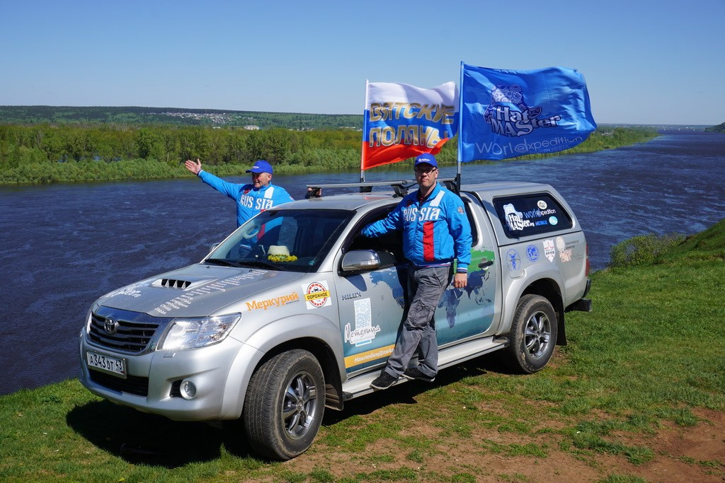 Легендарный автомобиль “Toyota hilux”, на котором та же команда совершила кругосветное путешествие в 2014 году, подъехал к музею, украшенный флагами – российским триколором с надписью: «Вятские Поляны» и фирменным флагом проекта «Hat Master». В музее посетителей с неизменной улыбкой встречала русская красавица в сарафане, и даже банкетный стол. Все-таки, хотя со времен кругосветки был организован ряд локальных непродолжительных путешествий, такого крупного проекта ждали давно.