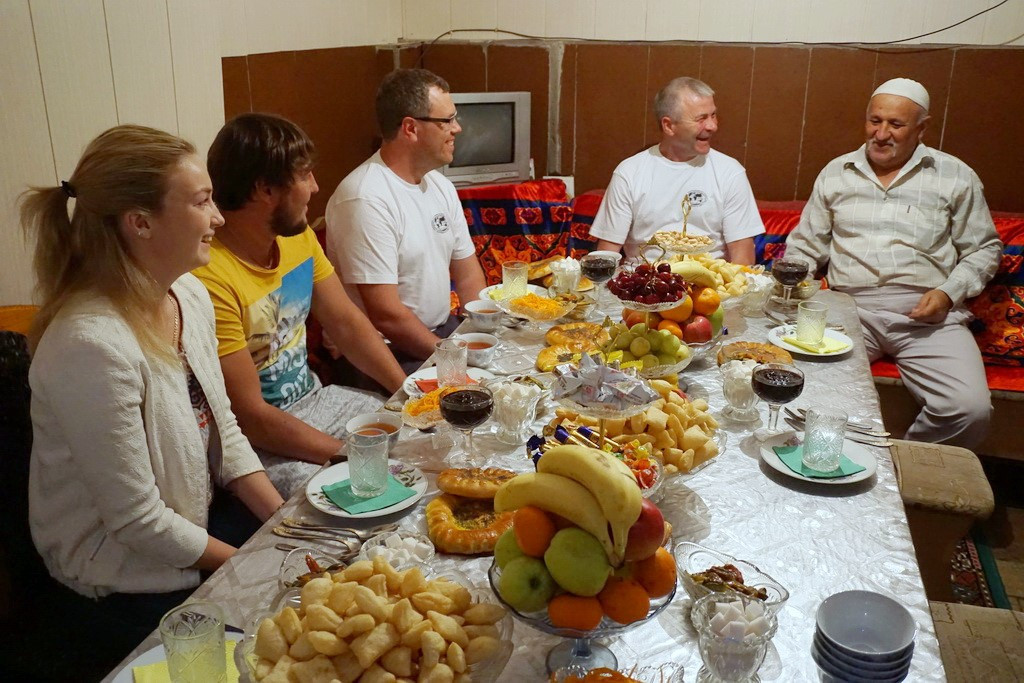 Население горных долин занимается традиционным для этих мест скотоводством, здесь нам удалось отведать парного кобыльего молока и ближе познакомиться с культурой и бытом коренного населения Кыргызстана. Преодолев значительное расстояние по Ферганской долине, через пограничный переход из Ошской области мы попали в Таджикистан, третью по счету страну на нашем маршруте.